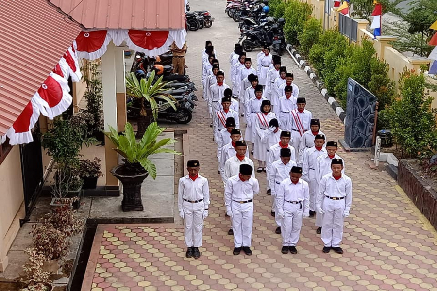Pelaksanaan upacara bendera dilakukan di halaman smpn 16 Tanjungpinang yang telah dihiasi dengan bendera merah putih. Pada upacara tersebut, pengibaran bendera merah putih dilakukan oleh para siswa, mereka merasa bangga dipercayakan sebagai pasukan pengibar bendera merah putih.