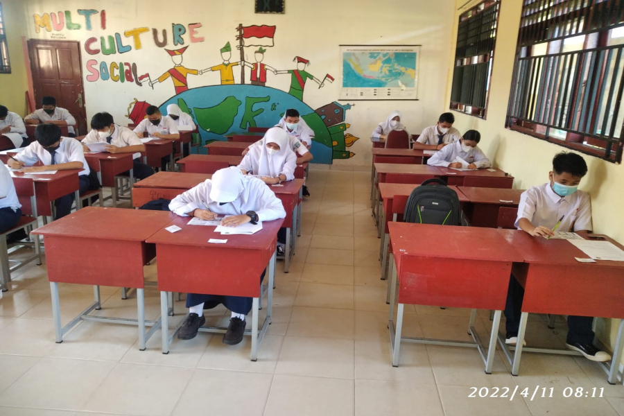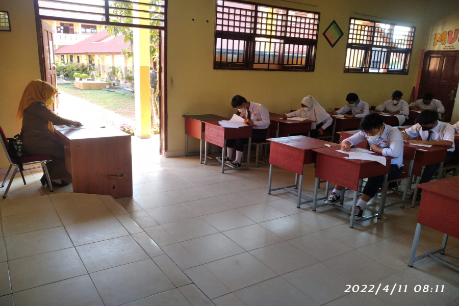 Terhitung mulai hari ini senin 11 April 2022 s.d 18 April 2022 Melaksanakan Penilaian Akhir Semester untuk kelas IX Kegiatan ini diikuti oleh 246 peserta didik .Penilaian ini merupakan salah satu bentuk Evaluasi yang dilakukan oleh satuan pendidikan dengan tujuan untuk mengetahui daya serap peserta didik pada semua kompetensi dasar yang telah diajarkan, pelaksanaan kegiatan ini dijalankan secara tatap muka dengan tetap memperhatikan protokol kesehatan , Semoga Peserta didik dapat memperoleh nilai yang optimal.